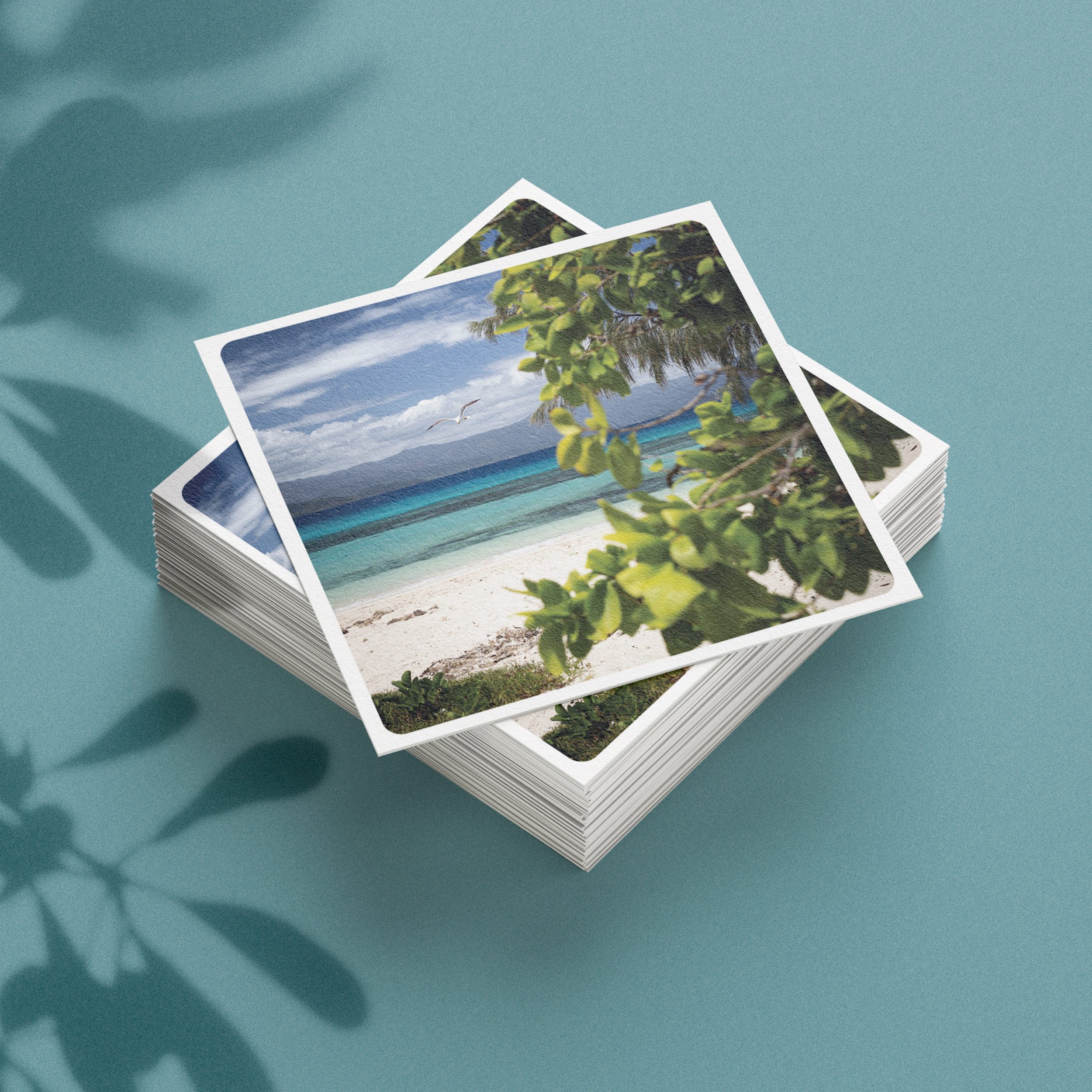 15 × 15 cm sur papier texturé effet toile de lin accompagné de son enveloppe 16.5 x 16.5 cm en option